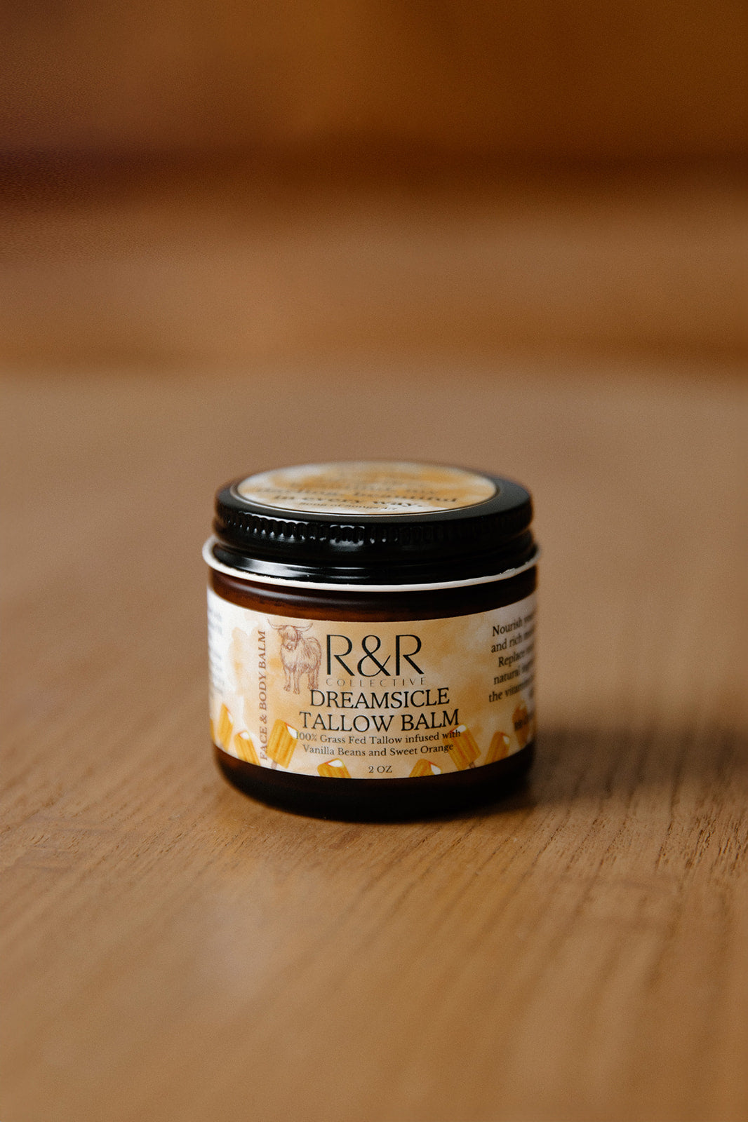 Ingredients: Grass-Fed, Grass-Finished Suet Tallow (Infused with Madagascar Vanilla Beans), Golden Jojoba Oil, Squalane Oil, Sweet Orange Essential Oil