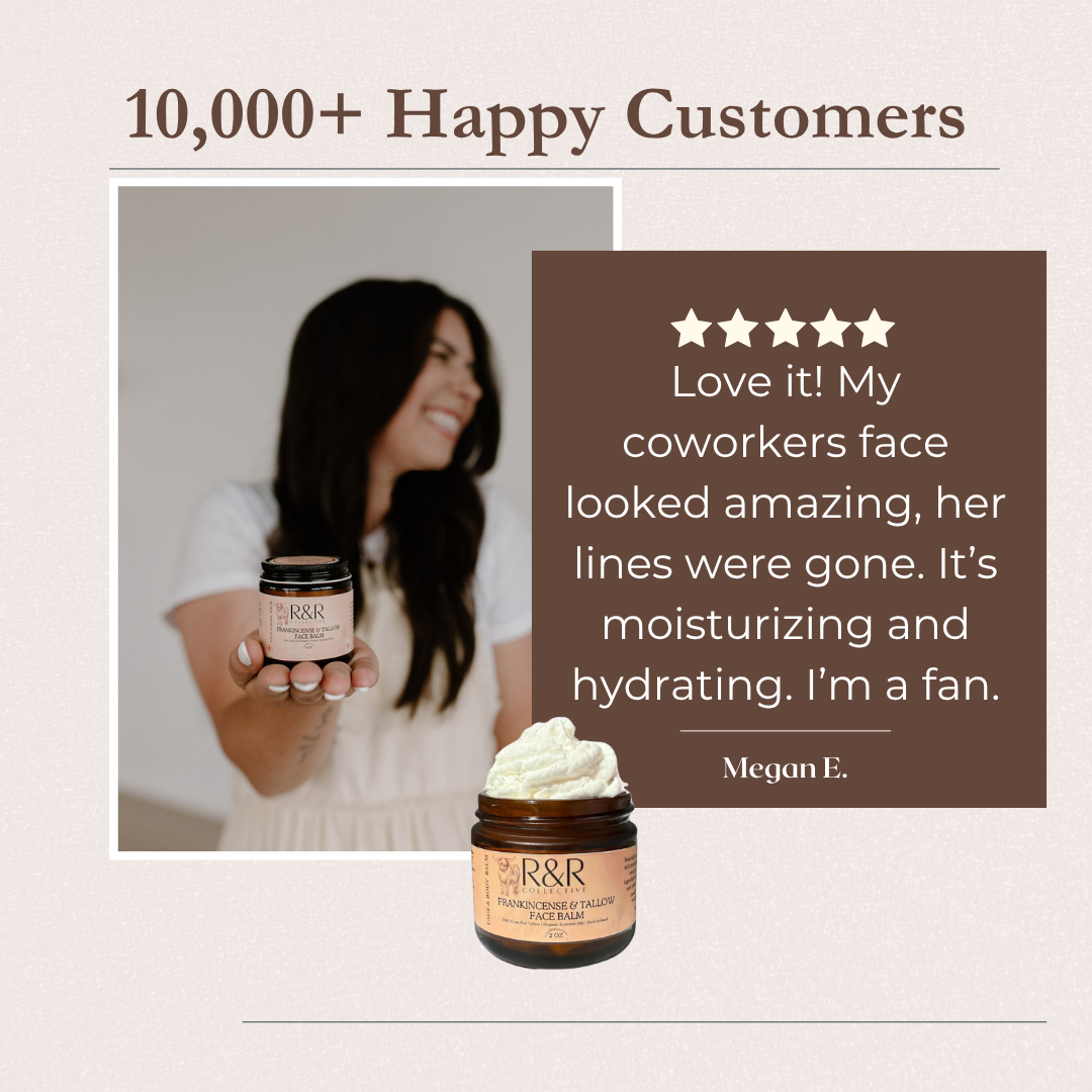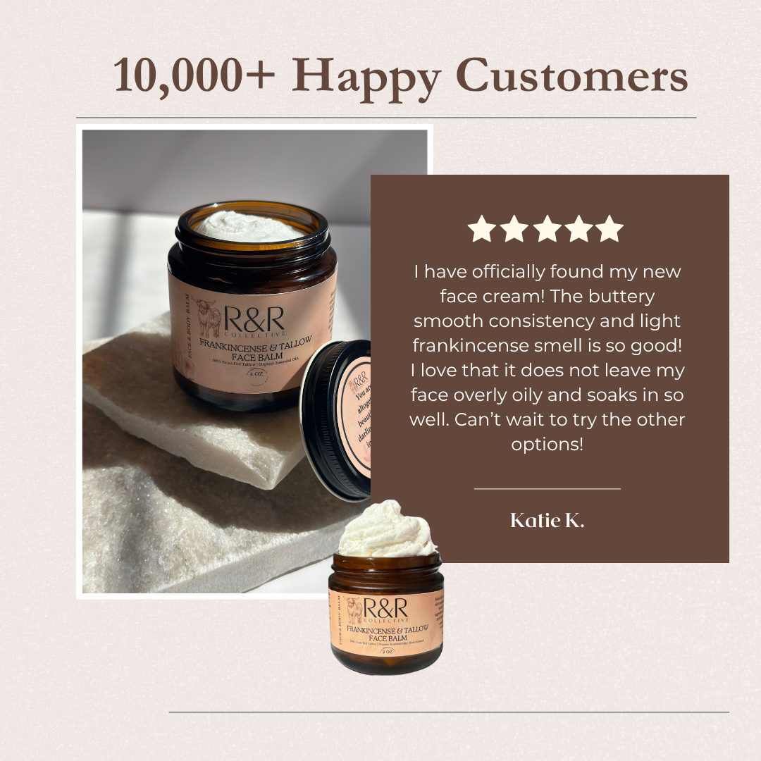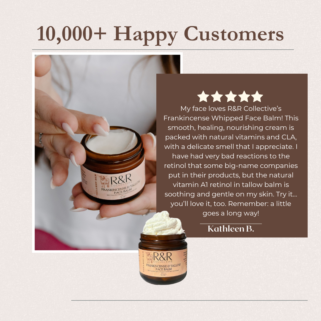 With our tallow balms, a little truly goes a long way. A pea-sized amount is all you need to deeply hydrate and protect your skin, thanks to the rich nutrients in grass-fed tallow. This means each jar lasts for months—giving you maximum nourishment with just the tiniest dab.